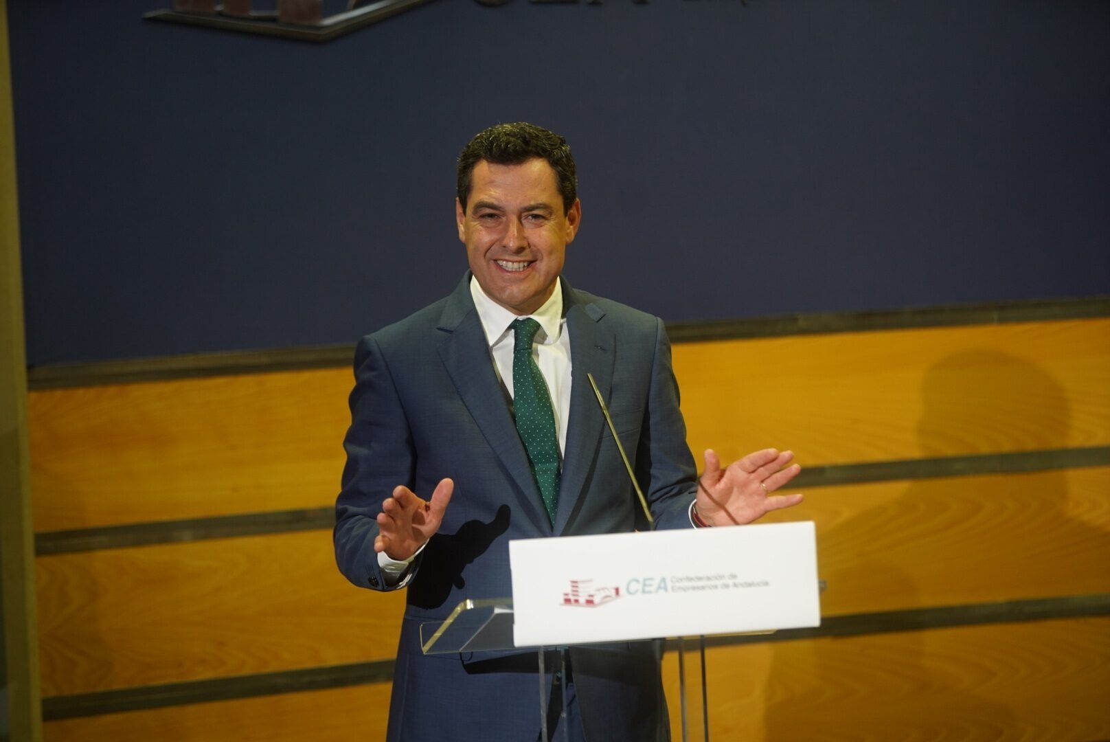 En un acto en la Confederación de Empresarios de Andalucía (CEA) en el que Juanma Moreno ha intervenido junto al líder del PP nacional y la exministra de Trabajo y actual presidenta de la Fundación CEOE, Fátima Báñez, el candidato a la reelección como presidente de la Junta de Andalucía ha prometido seguir la senda marcada por la Comunidad de Madrid y continuar la bajada de impuestos que su Gobierno impulsó desde que llegó al Palacio de San Telmo.