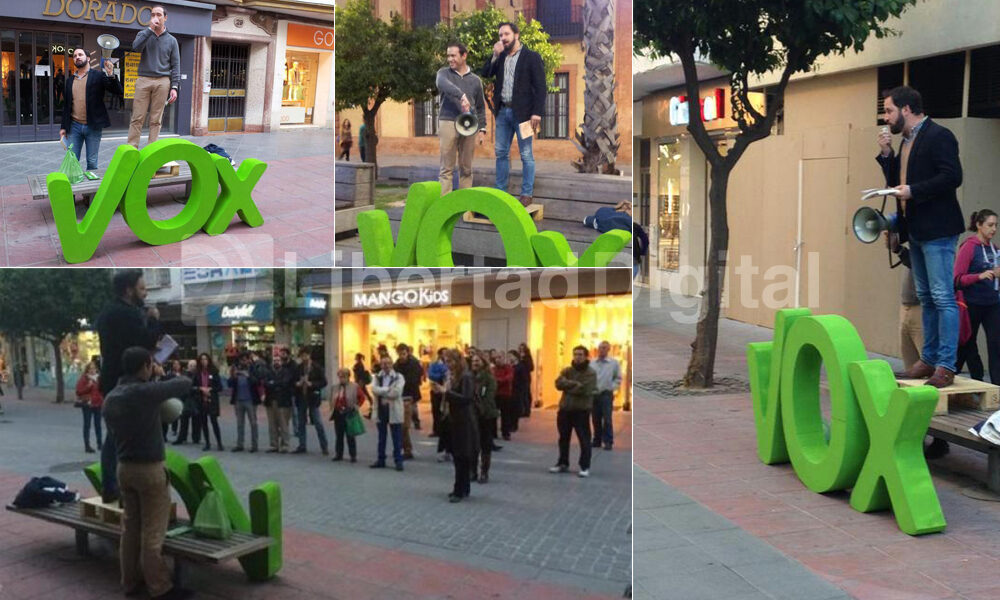 Hace siete años, en la campaña de las elecciones andaluzas de 2015, Santiago Abascal se subió a un banco de Sevilla situado en el número 54 de la calle Asunción, con un megáfono en la mano, para defender las propuestas de Vox. Absolutamente nadie se paró a escucharle. De aquel acto fallido quedó una imagen que se ha convertido en todo un símbolo para el partido.