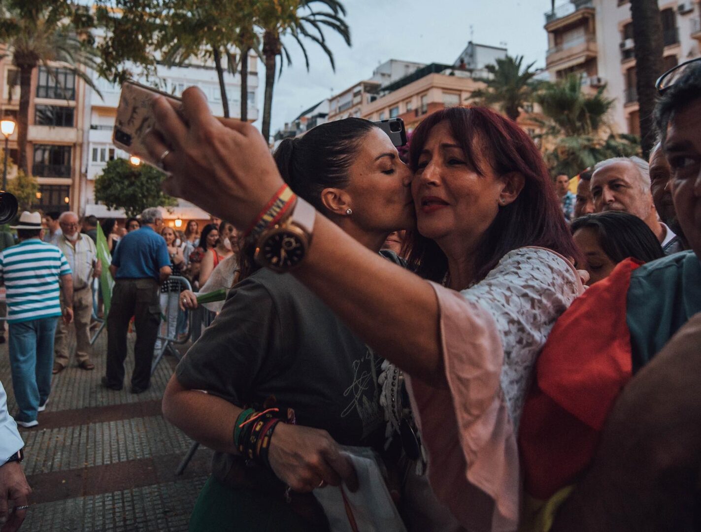 Los seguidores estallan en gritos de alegría cuando la candidata promete "entrar en San Telmo con una tijera de podar". El momento más aplaudido se produce cuando defiende que "el partido que estamos jugando es España" y que "ha venido para quedarse y luchar al lado de los andaluces". "¡Te queremos!", "¡presidenta, presidenta!", responden a sus promesas.