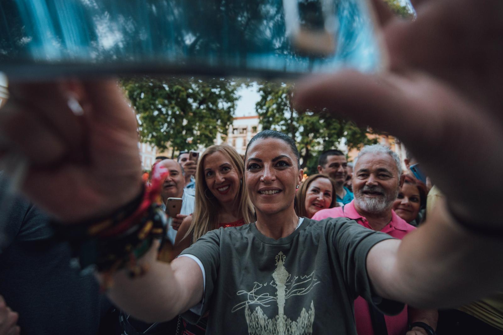 Los andaluces están encantados con su simpatía. Cuando las cámaras miran sólo de reojo, la candidata de Vox abandona por momentos su fiereza para dar paso a una persona cercana, que sonríe de forma natural a la gente, que disfruta con su calor, amable en los gestos y que baja el tono de voz hasta casi el susurro. "Estoy pidiendo una semana más de campaña", confiesa a este periódico despreciando las noticias que hablan de su supuesto cansancio.