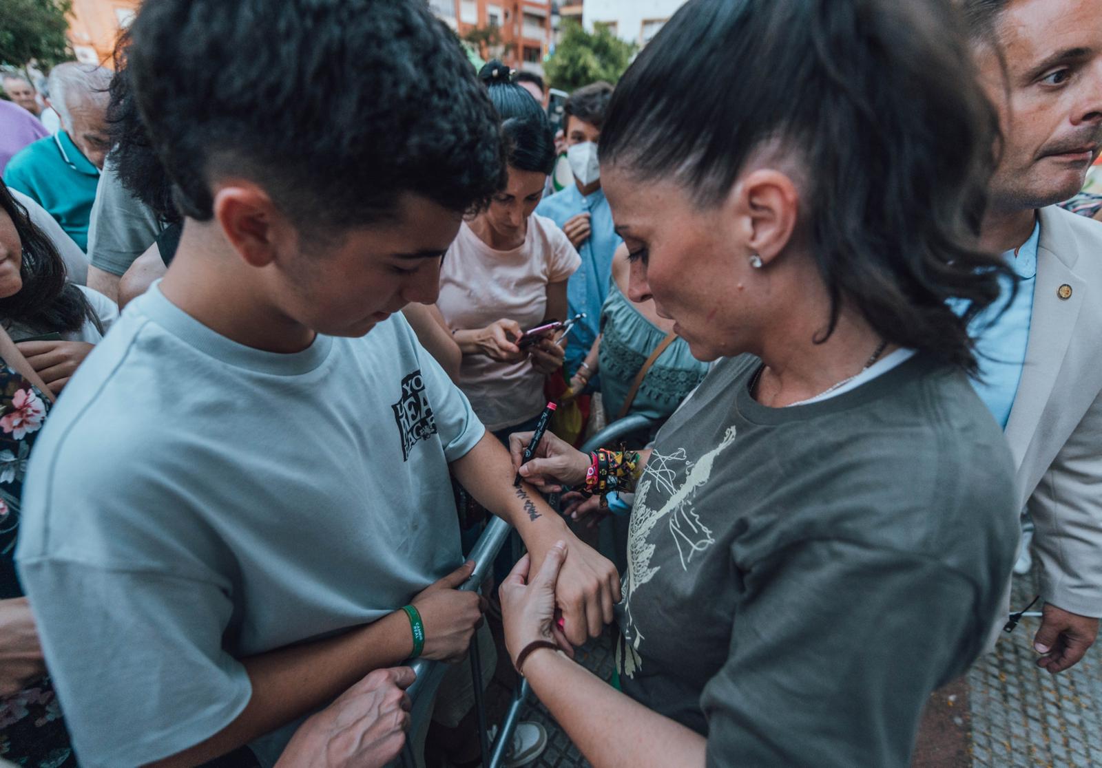 Les piden fotos, besos, abrazos, les regalan botellas de aceite, una mujer coge del cuello a Abascal con fuerza, apenas le deja respirar. "No nos abandones", le imploran casi en tono amenazante. Algunos están a punto de romper a llorar de la emoción. Una mujer le ofrece su bebé a Olona para que lo coja pero ella, arrastrada por la marea, le lanza un beso con la mano desde lejos pensando en la seguridad del niño.