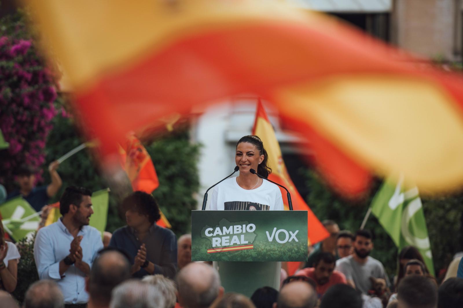 Detrás de ella sube Abascal y un hombre entre los asistentes le grita "guapo, estás muy bueno" mientras él se gira y sonríe. "Está bien que hablen del pinchazo de Vox porque el 19 de junio hablarán de la estocada", empieza diciendo el líder ante las miles de personas que llenan la plaza. Una imagen que contrasta con las encuestas que rebajan el suflé de Vox.
