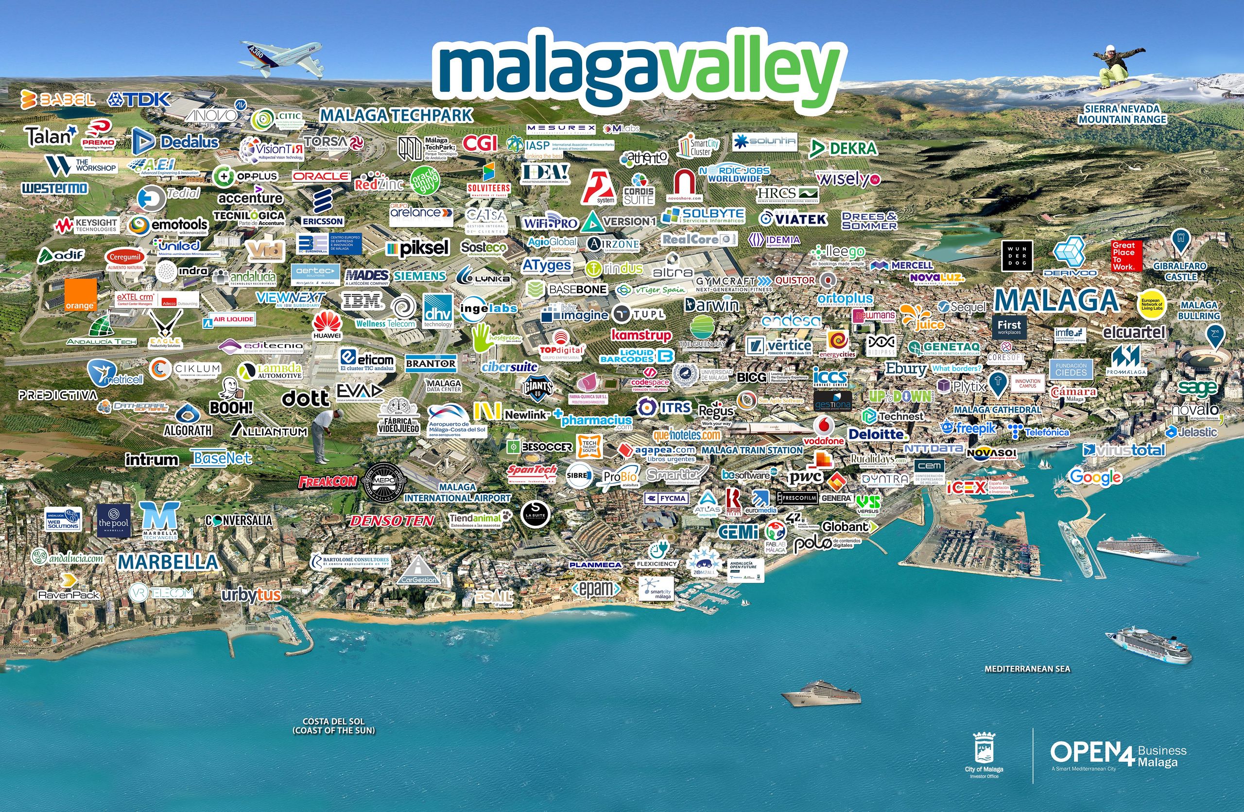 El Ayuntamiento de Málaga actualiza regularmente un mapa que ayuda a identificar de manera visual la gran presencia empresarial en la ciudad, a la que se refieren como Málaga Valley. La mayoría de ellas se encuentran ubicadas en el Tech Park, e incluyen a gigantes empresariales como Google, IBM, Huawei, PWC o Vodafone. Además, el valle tecnológico malageño ha sido el soporte para compañías locales que han dado el salto internacional, como Virus Total (adquirida por Google), Uptodown o Besoccer.