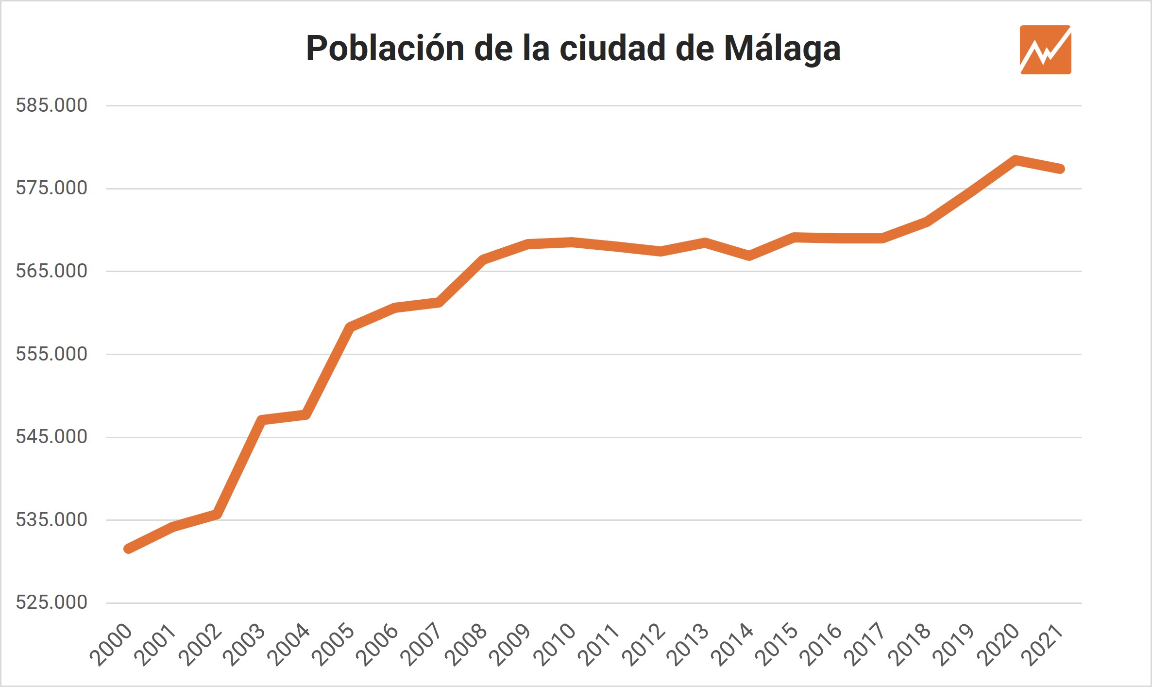 El éxito malagueño es una realidad. No se trata de una moda, una tendencia o un fenómeno mediático. O, al menos, ya no se trata solo de eso. Una de las formas de entender lo que está ocurriendo con Málaga es echar un vistazo a su evolución demográfica. En la actualidad, la ciudad cuenta con más de 577.000 habitantes, de acuerdo con los últimos datos del INE recopilados por Libre Mercado, y conforma la sexta urbe más poblada de España. Esto supone un alza del 8,6% desde comienzos de siglo, si bien son los datos provinciales los que ofrecen un crecimiento verdaderamente colosal.