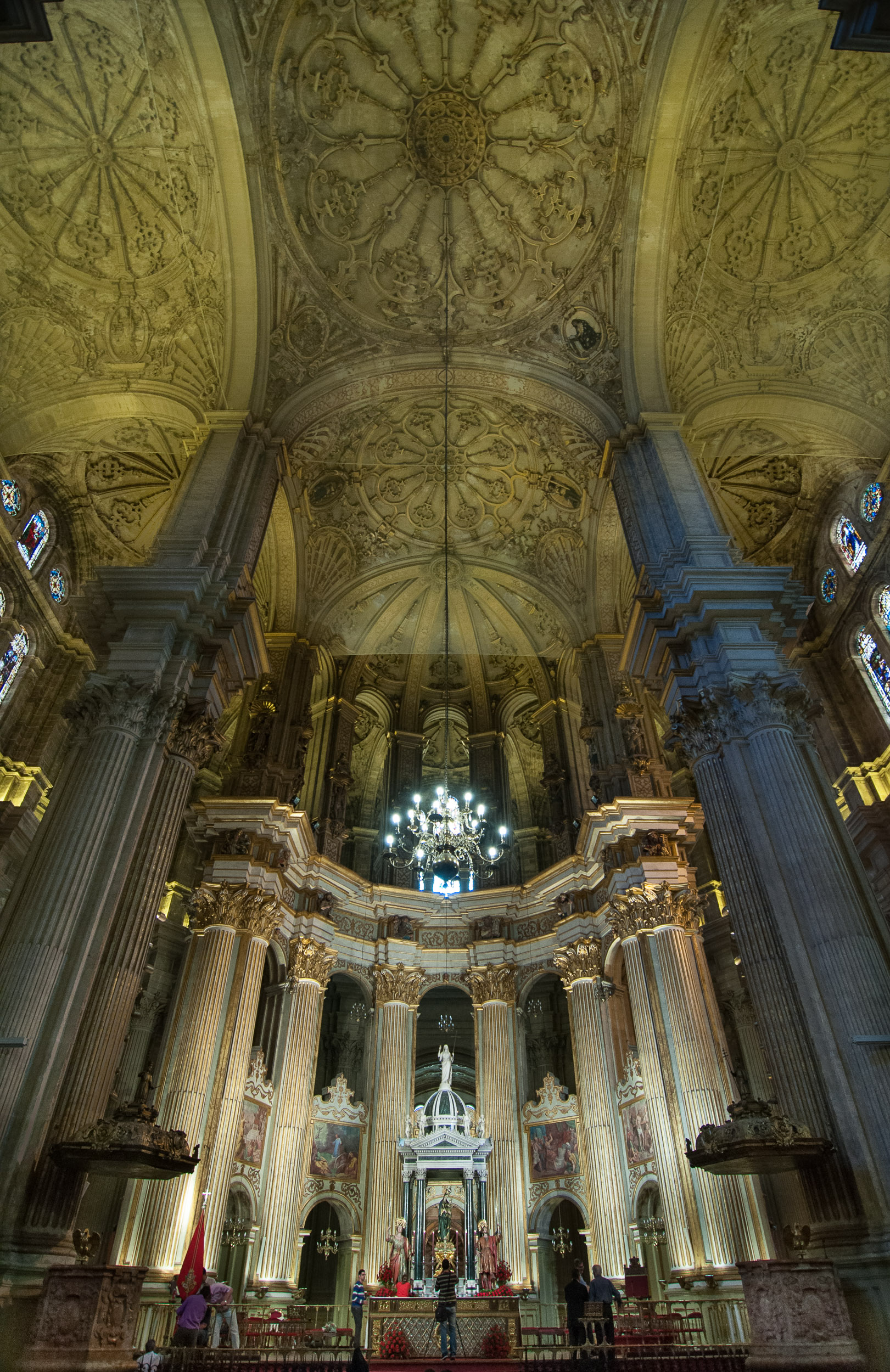 En construcción durante más de 250 años y aún así inacabada, la catedral de Málaga es pese a ello una de las más importantes iglesias renacentistas en nuestro país. Desde hace unos años es posible (y muy recomendable) visitar las cubiertas en unos tours guiados que permiten disfrutar de unas estupendas vistas de la ciudad. En su interior destacan el coro y su sillería barroca y su excepcional y bastante original altar mayor, en la imagen.