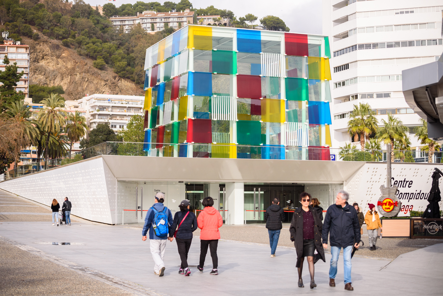 Málaga también tiene un pedacito de París en sus calles. El Centre Pompidou es una sede del Centro Nacional de Arte y Cultura Georges Pompidou de Francia y está ubicada en el espacio denominado El Cubo en la ciudad española de Málaga, en la zona del Muelle Uno. Se trata de la primera sede del Centre Pompidou París en el exterior, al final del paseo marítimo Pablo Picasso.