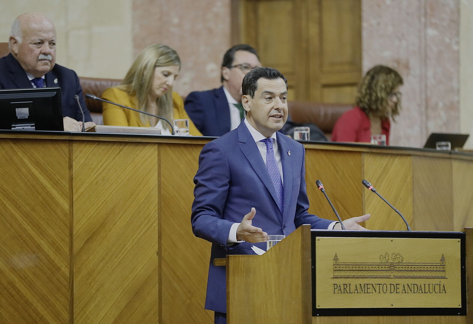 El Parlamento andaluz ha acogido este miércoles el primer debate de política general de Andalucía de esta XII Legislatura. Una legislatura que viene marcada por la mayoría absoluta de la que goza el PP (58 escaños), y que permite a Juanma Moreno legislar sin necesidad de apoyo de la oposición - como ocurrió en su primera etapa como presidente, en la que formó un Gobierno de coalición con Ciudadanos, con el apoyo de Vox.