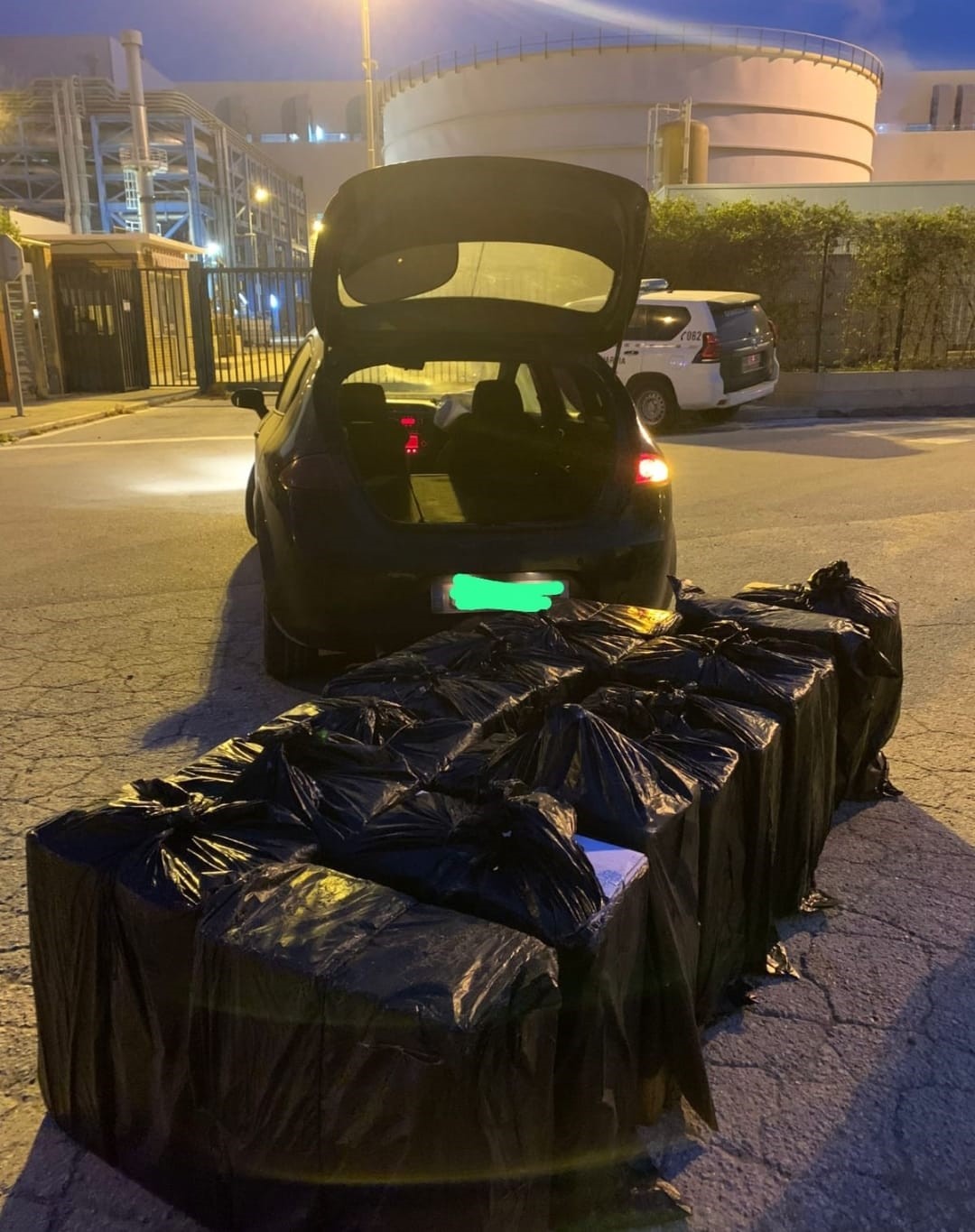 El vehículo de los contrabandistas estaba lleno de farjos de tabaco. Solo quedaba libre el asiento del conductor.