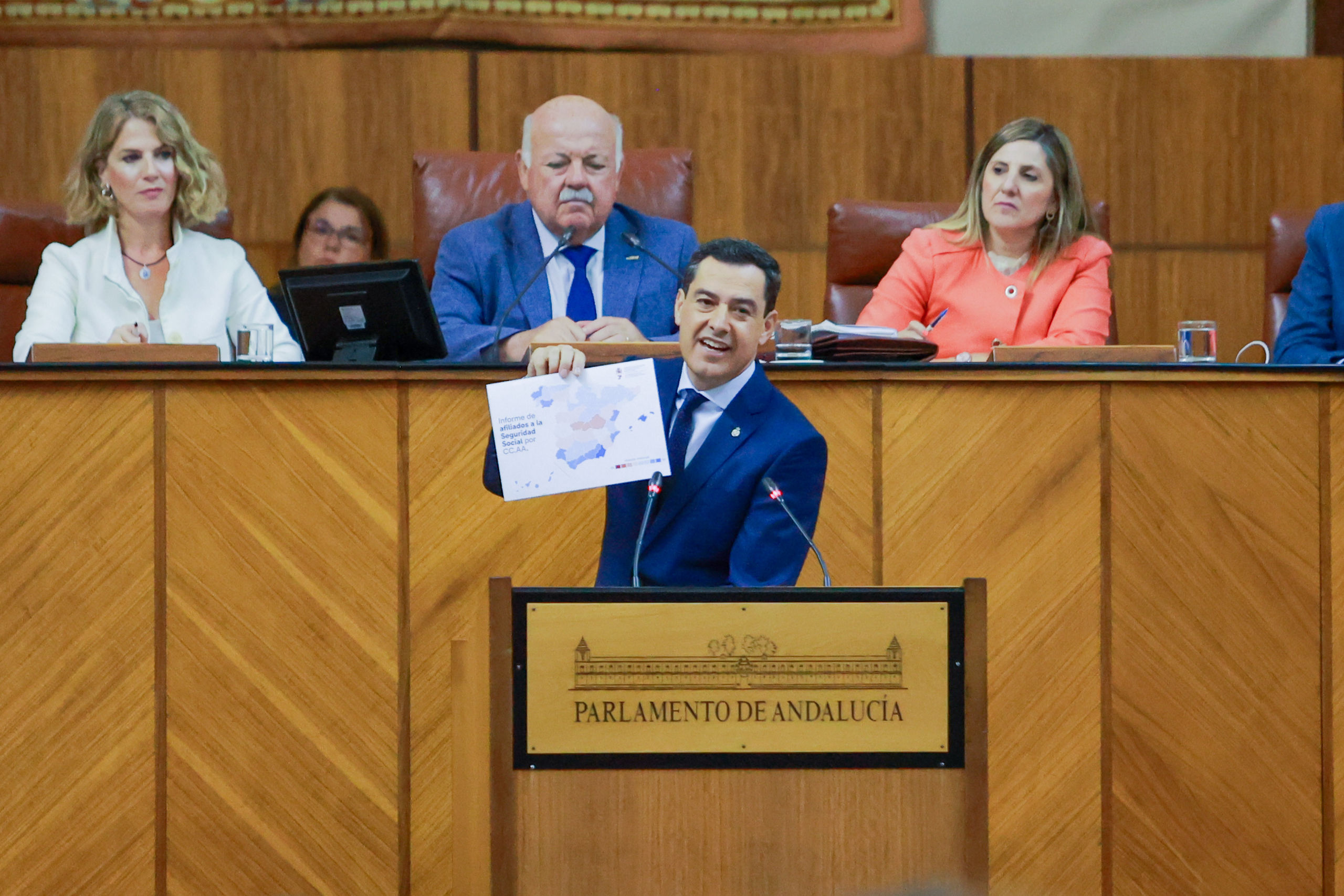 La deuda de 22.500 millones de euros del Estado con Andalucía ha sido la verdadera protagonista del debate de política general que se ha celebrado este miércoles en el Parlamento andaluz. Una deuda frente a la que el presidente de la Junta, Juanma Moreno, pide a la oposición formar "un frente común", y "rebelarse" con el "respaldo unánime" del Parlamento.