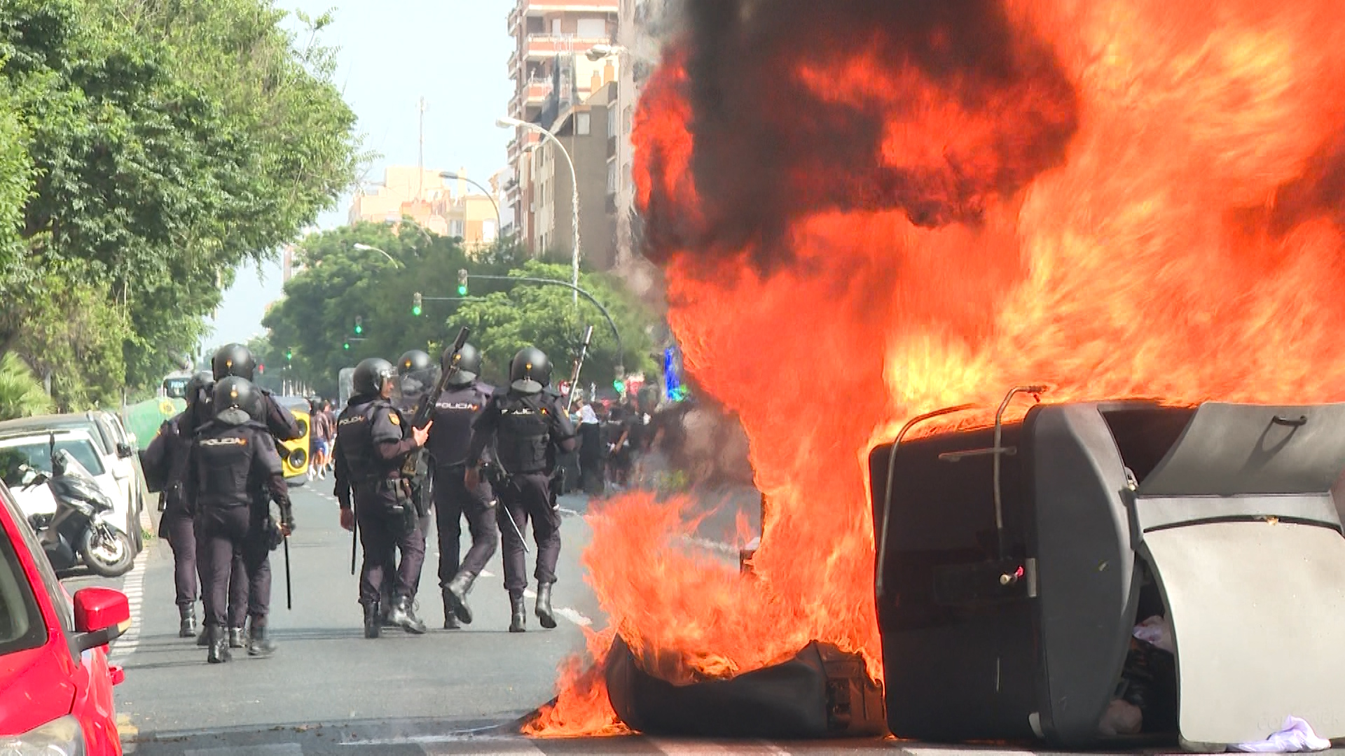 Las unidades antidisturbios han intentado disuadir a los manifestantes disparando pelotas de goma, en medio de un clima de creciente tensión. Varios furgones policiales se han desplegado en la zona ante la escalada de violencia.