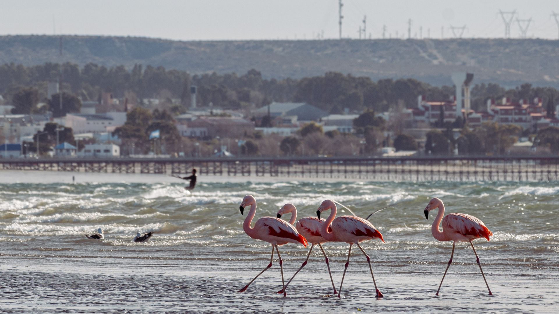 Los flamencos suelen habitar en humedales y marismas, aunque durante sus desplazamientos no es raro que hagan escala en playas.