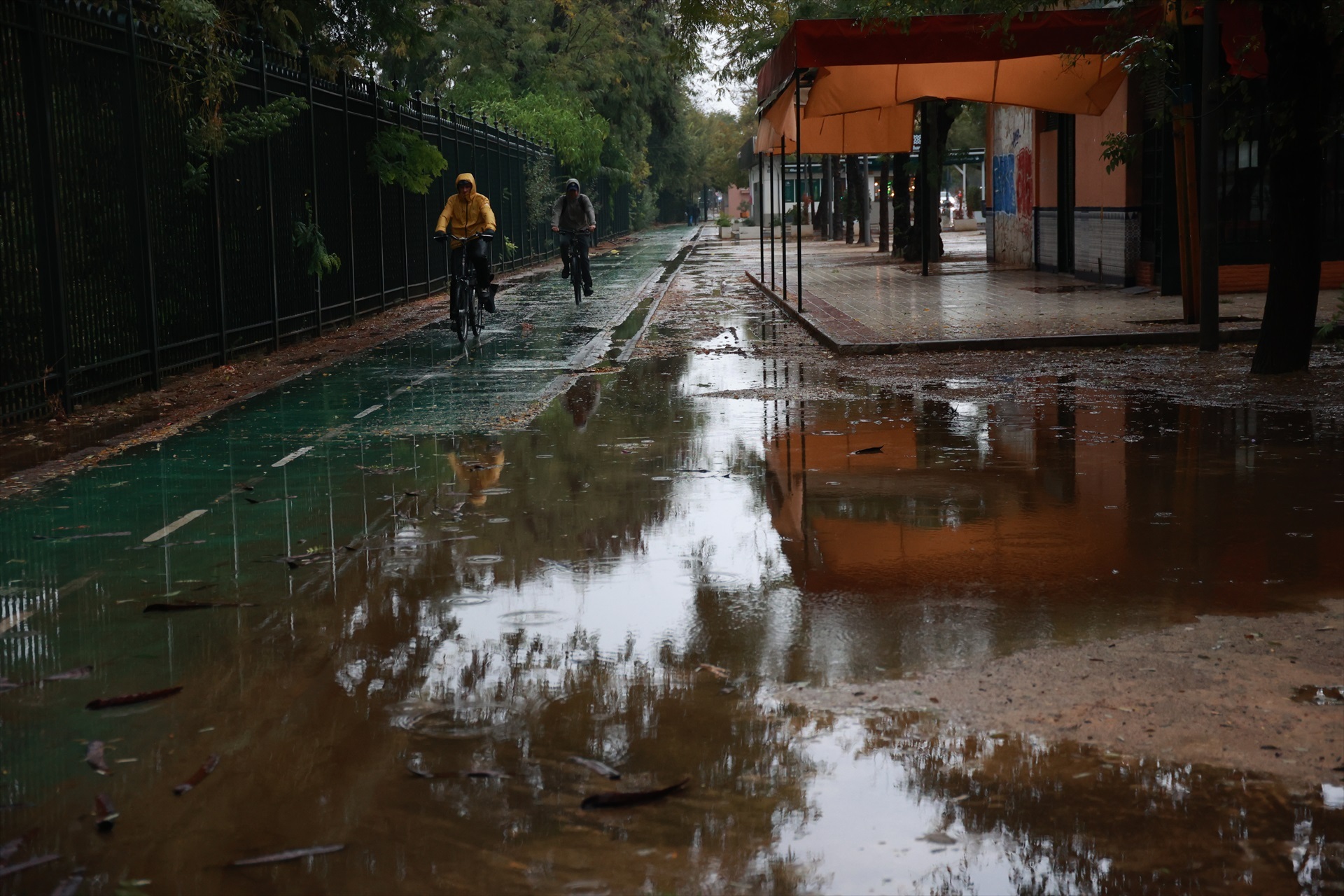 Gente caminando entre el agua que han dejado las fuertes precipitaciones.