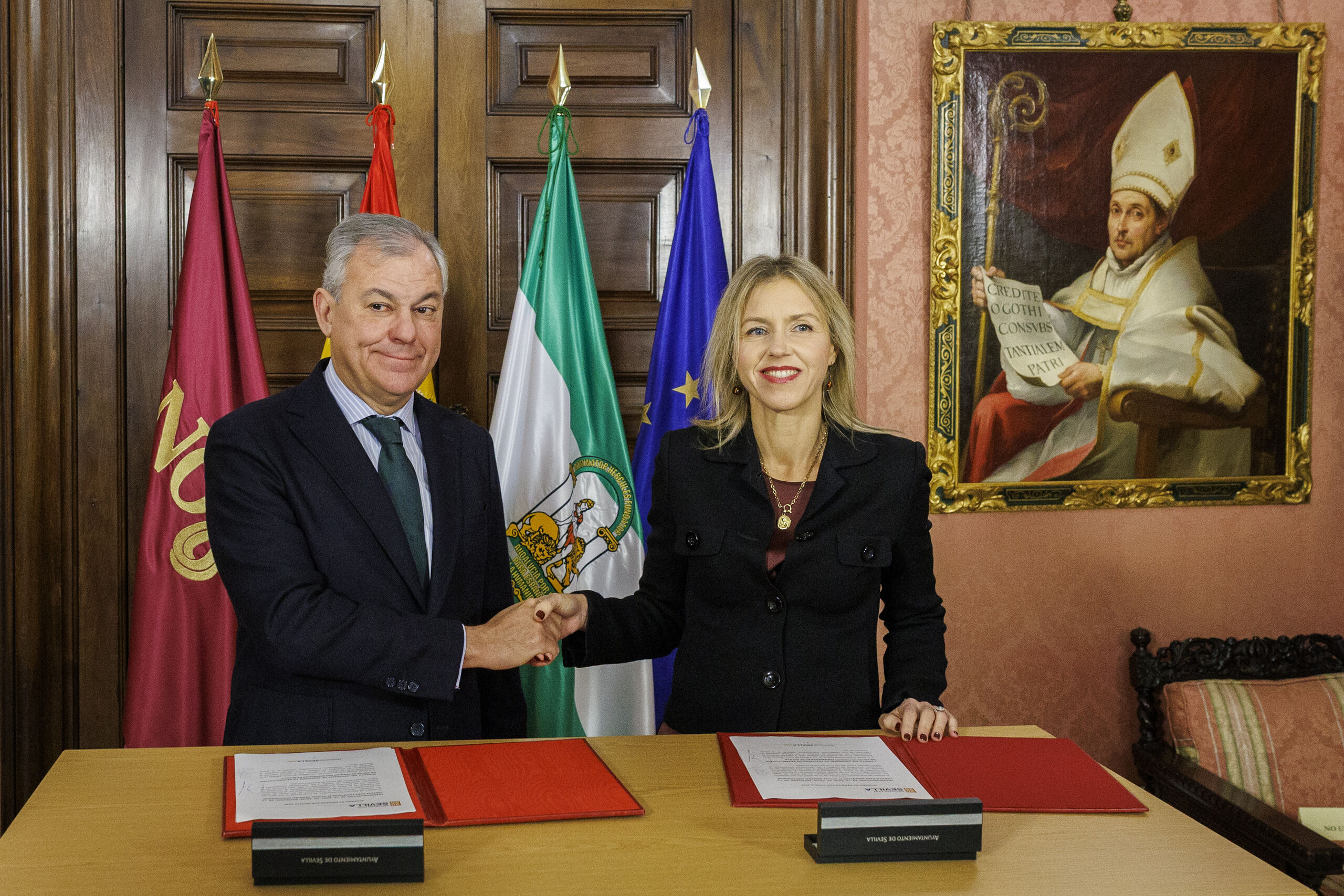 El alcalde de la capital andaluza, José Luis Sanz, del PP, firmó este martes con la portavoz de Vox en el Ayuntamiento, Cristina Peláez, un acuerdo para sacar adelante el presupuesto municipal para 2026, que contempla entre otras cosas restricciones en el empadronamiento de personas sin documentación y reducir la zona de bajas emisiones al tráfico.