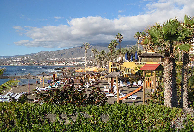 La playa de las Américas, en el sur de la isla de Tenerife, es un popular destino turístico. A diferencia del norte de la isla, esta zona cuenta con un clima seco donde apenas llueve, lo que la ha convertido en meca de turistas sedientos de sol. Para atender la masiva llegada de viajeros y potenciar la costa se construyó el segundo aeropuerto de la isla en los años 70.