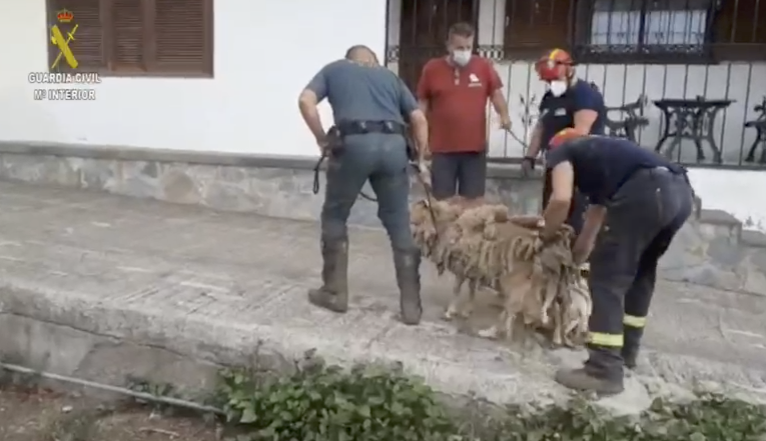 Ante esta situación tan extrema en las cercanías de las casas y granjas afectadas en la isla de La Palma, efectivos de la Guardia Civil han trabajado también efectuando rescates de animales para su evacuación ante la inminente llegada de la lava a sus corrales.