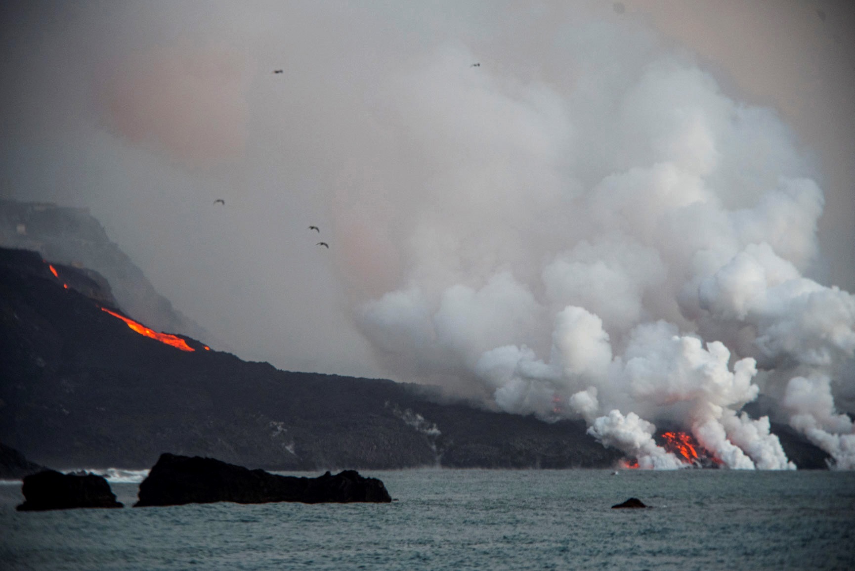 Las coladas siguen estables gracias a un tubo lávico que conecta con el mar