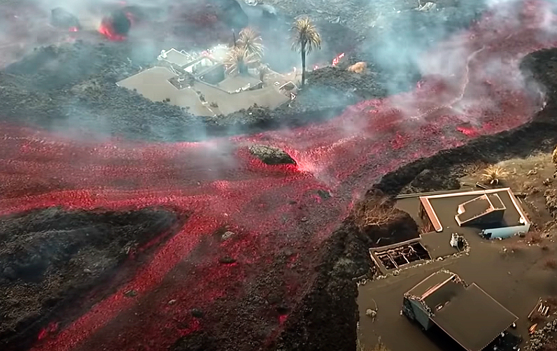 El IGME ha publicado un vídeo grabado con dron sobre el terreno por sus científicos muy cerca de la nueva colada, en el que se aprecia la fuerza con la que desciende y el tamaño de uno de los bloques de piedra.