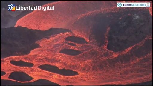 Dos ríos de lava avanzan sobre la colada primigenia, esta vez por la zona central. Al acercar la cámara se aprecia que es lava muy fluida que forma cascadas y lagos, pero según se va acercando al mar pierde velocidad. Le cuesta más avanzar cuanto más material va arrastrando. Gracias a esta ralentización se salvan de momento construcciones muy cercanas a las coladas. Porque la lava, aunque no se vea hoy por la columna de ceniza, sigue saliendo por varias bocas. Cada vez hay más tubos que canalizan toda la lava. Esas coladas finalizan en frentes que apenas avanzan.