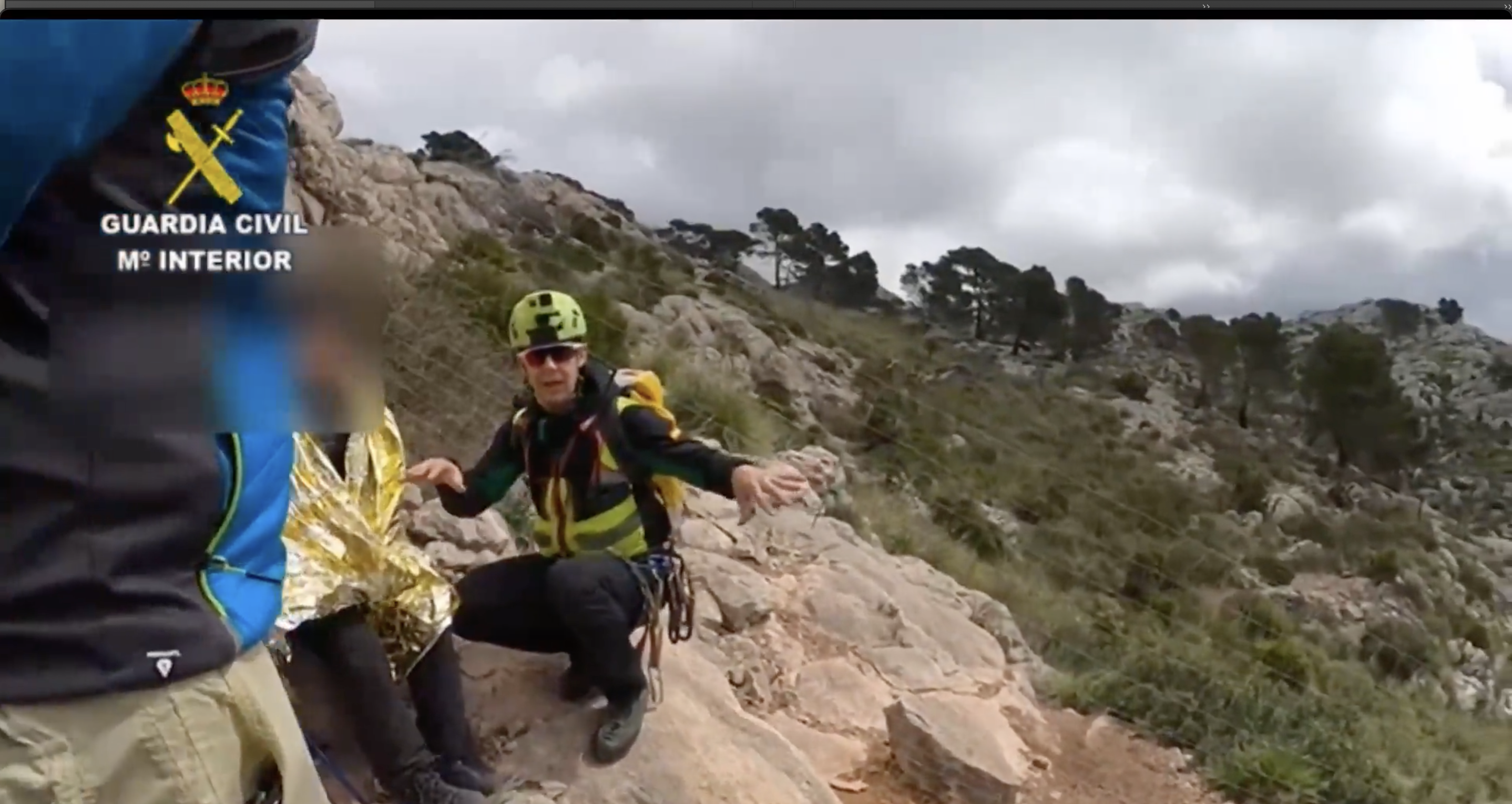 La Guardia Civil que ha rescatado a una pareja de excursionistas, un hombre y una mujer de 70 años y origen alemán, en la Coma dels Cellers, en Andratx, al sufrir ella una caída por la ladera de la montaña que le causó lesiones en manos y cabeza.