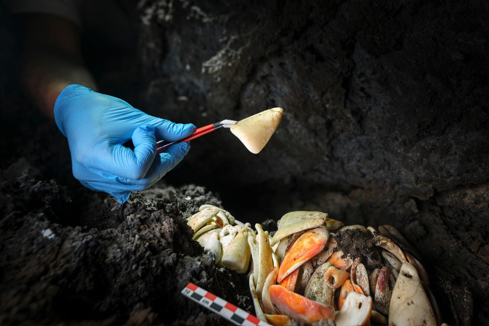 Finalmente se pudieron realizar quince levantamientos en 3D de la superposición y acumulación de cada uno de los elementos arqueológicos. Además de las 225 cuentas de moluscos, "la mayoría son conchas que pertenecen al taxón de los ostrones, seguida del conus y luego la lapa", explicó el arqueólogo, se recuperó un hueso y materia orgánica tanto del resto vegetal que recubría ambos conjuntos como unos carbones que estaban debajo de uno de los depósitos.