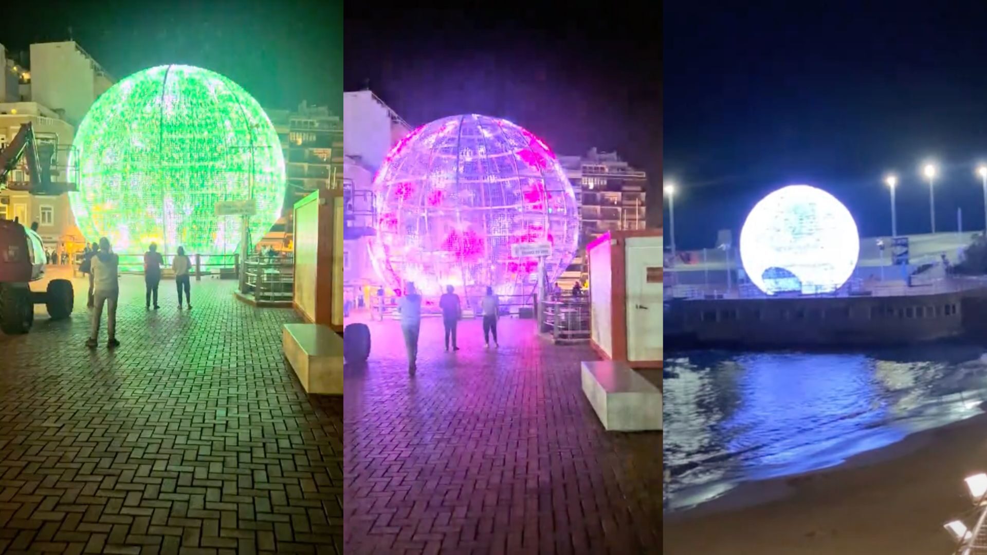 @luis.hernandez4554 Bola gigante de Navidad de luces en el paseo de La Playa de Las Canteras, en Las Palmas de Gran Canaria. Navidades 2024.