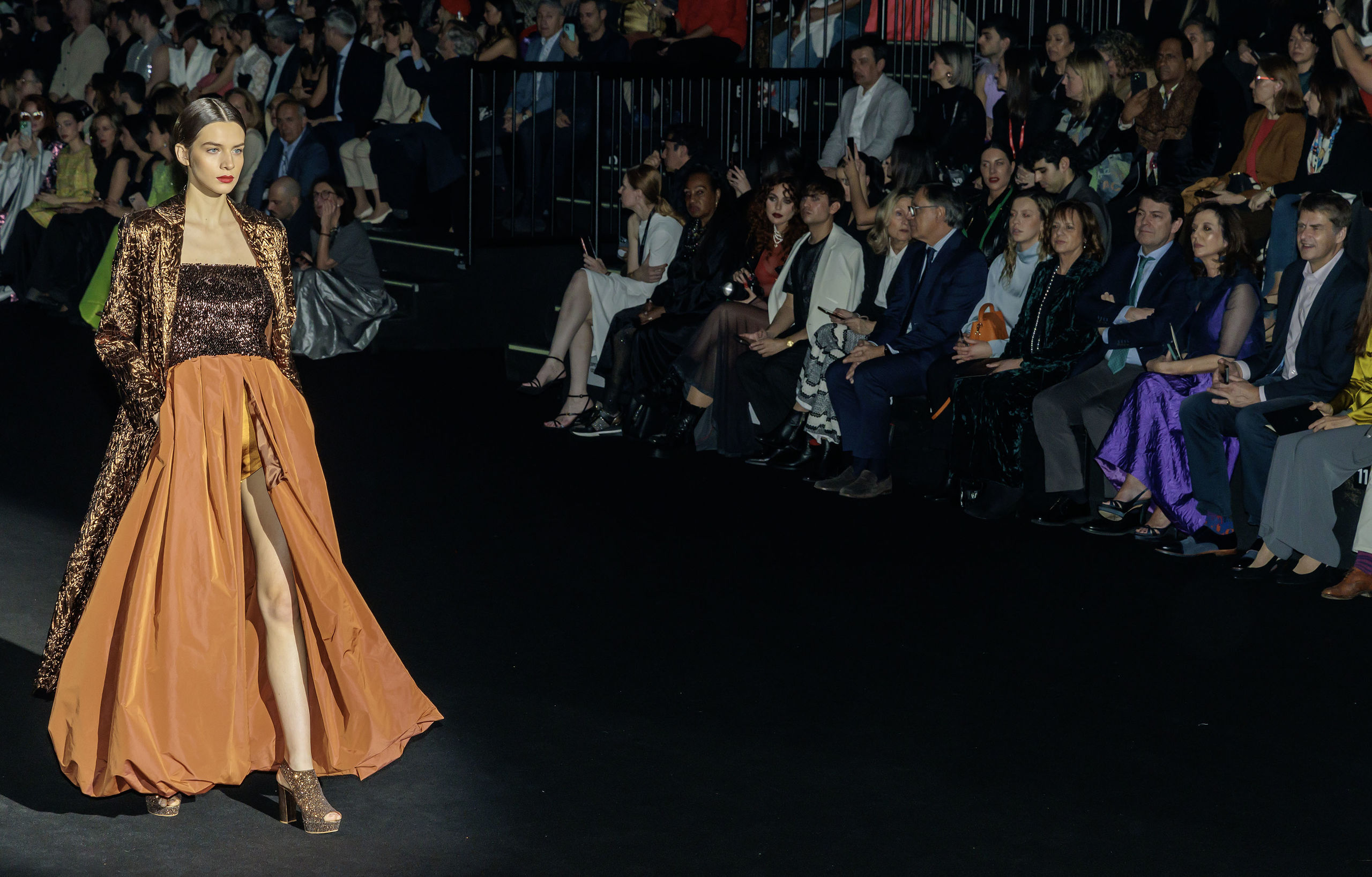La presencia del presidente autonómico coincidió con el desfile de la diseñadora salmantina Fely Campo, que cumple 50 años en activo.