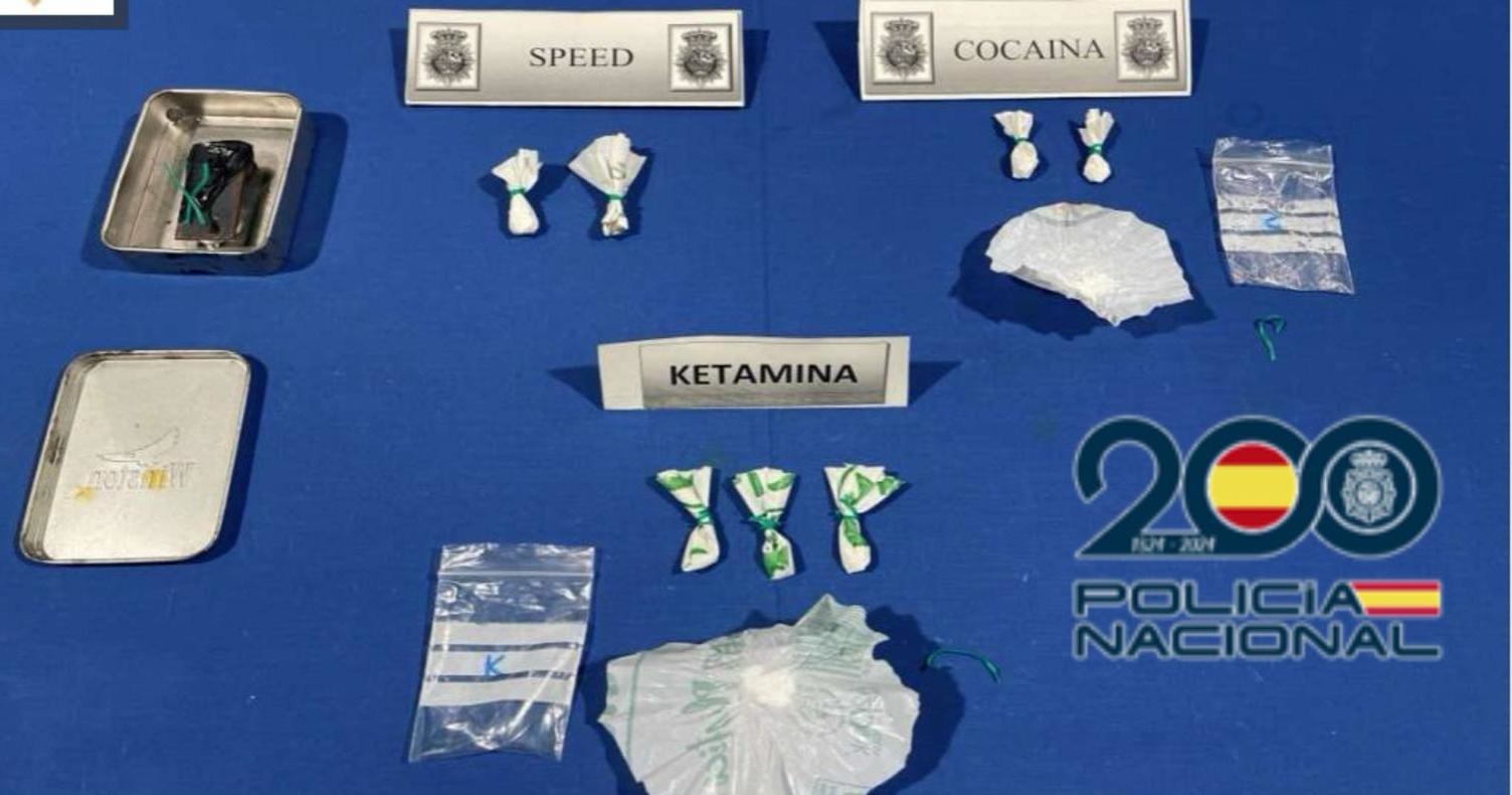 Las sustancias estaban distribuidas en dos envoltorios de plástico en el que guardaba tres gramos de speed, tres envoltorios de plástico de color blanco anudados con alambre de jardinería de color verde, que contenían 2,5 gramos de cocaína, y cuatro envoltorios de plástico de color blanco y verde anudados con el mismo alambre, en los que había 3,9 gramos de ketamina.