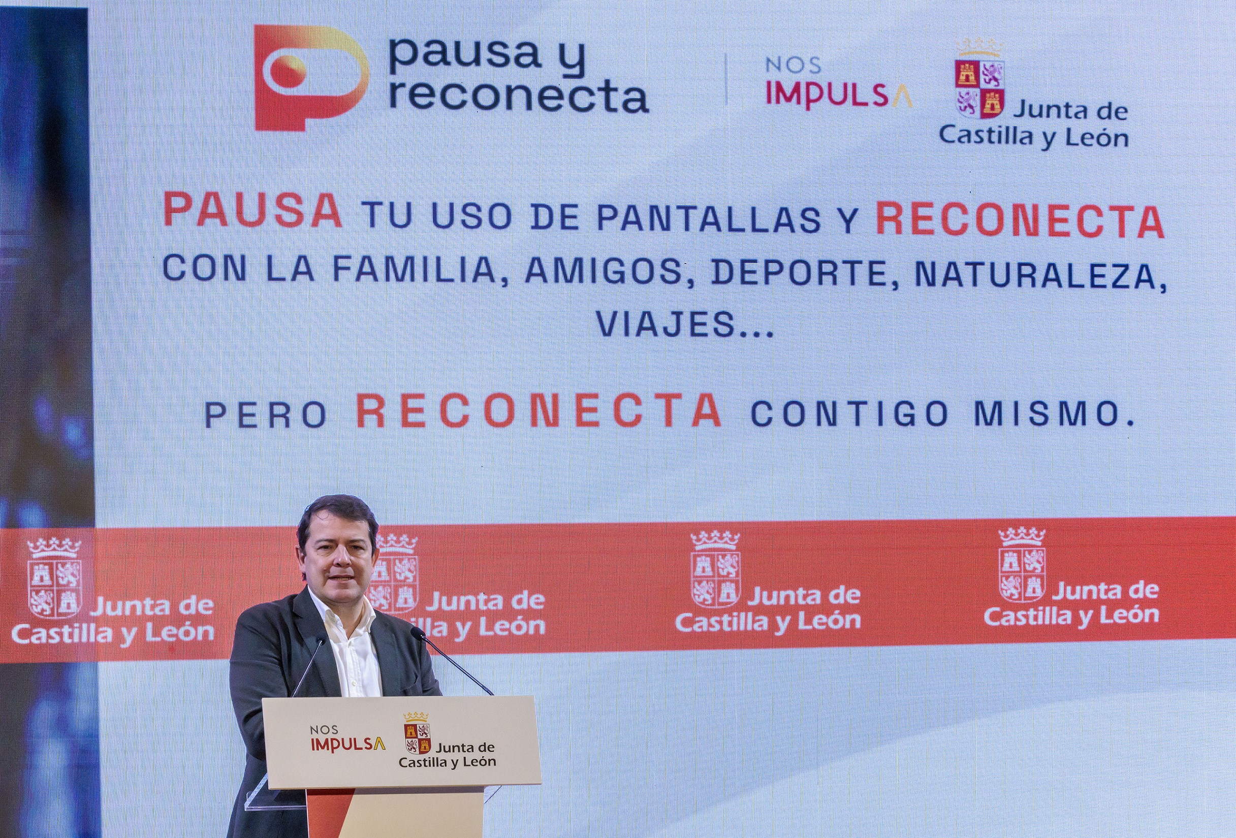 El presidente de la Junta de Castilla y León, Alfonso Fernández Mañueco, ha presentado este lunes la campaña 'Pausa y Reconecta' dirigida a concienciar y a prevenir las adicciones derivadas del uso problemático de internet y a promover una utilización saludable de las redes sociales y los videojuegos.