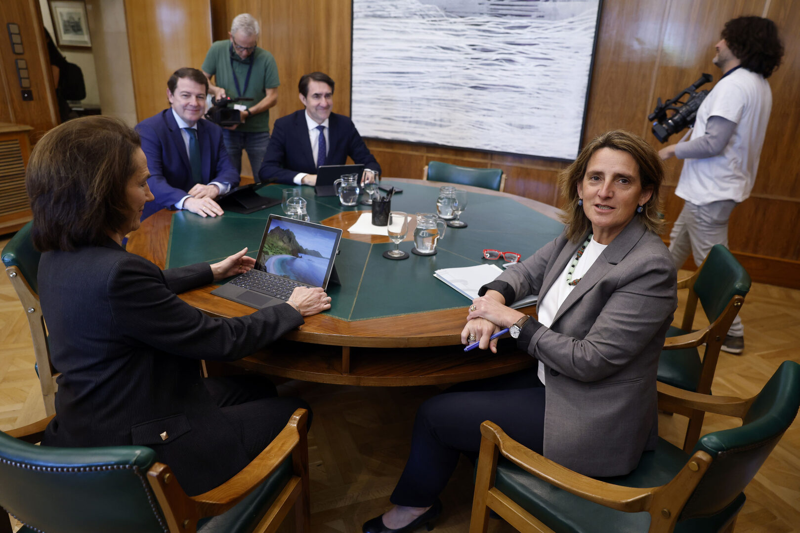 El presidente de Castilla y León, Alfonso Fernández Mañueco, se reunió este jueves con la vicepresidenta tercera y ministra para la Transición Ecológica, Teresa Ribera. Tras el encuentro, Mañueco detalló algunas de sus peticiones, relacionadas con la energía, la despoblación y el agua.