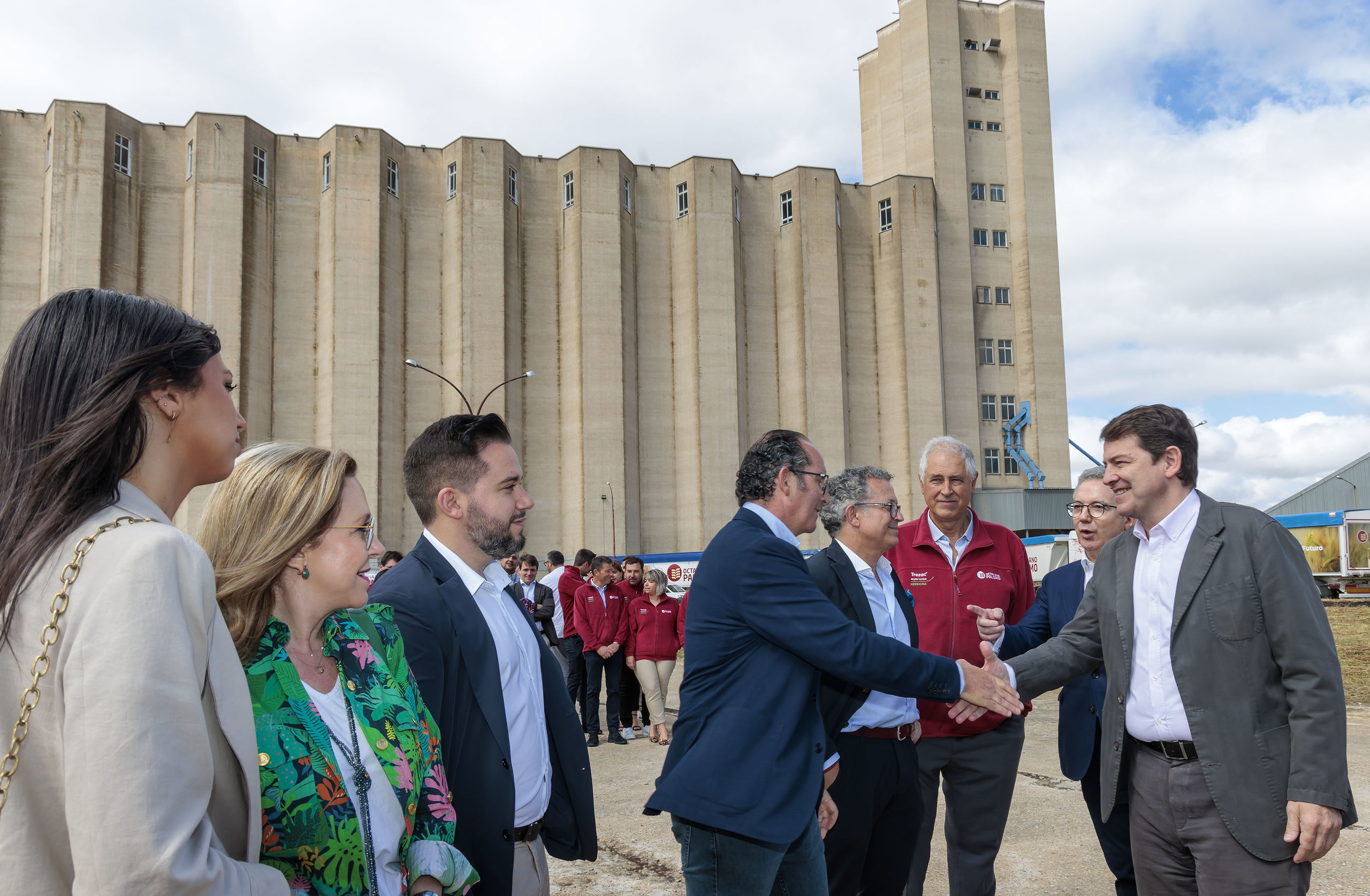 Fernández Mañueco ha mostrado el apoyo de la Junta al Grupo Octaviano Palomo, al que ha agradecido su implicación en la generación de riqueza y empleo en Castilla y León, y su contribución a que la Comunidad sea una potencia en la industria cerealística, suministrando cereal de calidad al mundo entero.