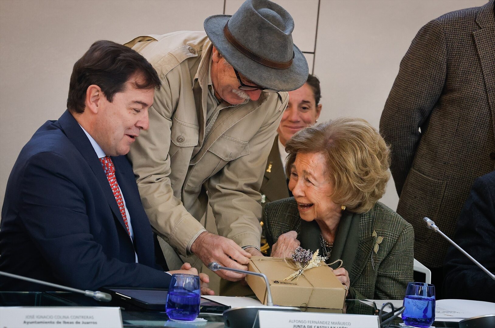 El presidente de la Junta de Castilla y León, Alfonso Fernández Mañueco, ha asistido este martes en el municipio burgalés de Ibeas de Juarros al acto inaugural del 'Centro de Investigación Emiliano Aguirre', presidido por Su Majestad la Reina Doña Sofía, y que ha contado con una financiación de 810.000 euros del Gobierno autonómico, lo que supone la mitad de su presupuesto total.