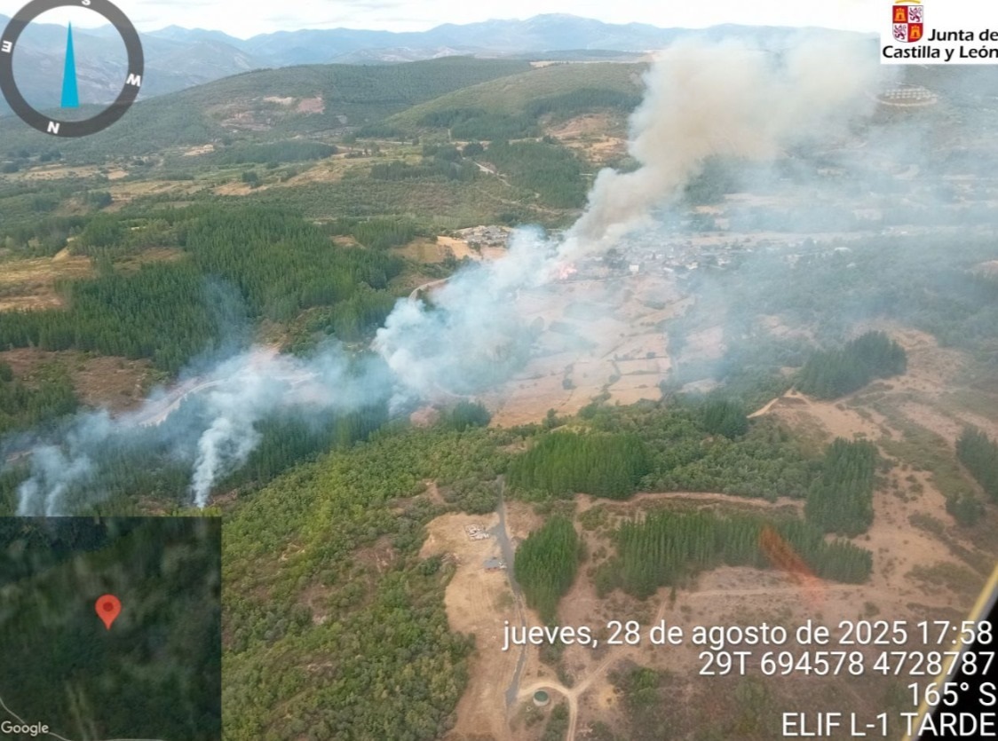 La evolución de las llamas mantiene la situación bajo seguimiento en una jornada especialmente complicada para la comarca berciana, que afronta varios fuegos activos en las últimas semanas.