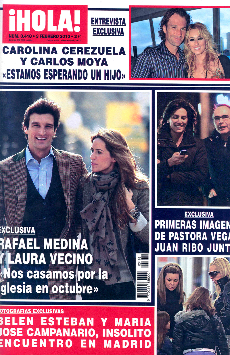 Rafael Medina y Laura Vecino anunciado su compromiso y enlace acapara la atención de ¡Hola!, que tambén destaca dos exclusivas más -el embarazo de Carolina Cerezuela y las primeras imágenes de Pastora Vega y Juan Ribó- así como el encuentro de Belén Esteban con María José Campanario.