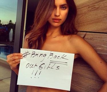 Irina Shayk por el movimiento #BringBackOurGirls | Instagram "Egoísta", "insensible"... El topless de Irina Shayk más criticado 22 comentarios Ha recibido un aluvión de críticas por posar desnuda con el eslogan #BringBackOurGirls por las niñas secuestradas por Boko Haram en Nigeria.