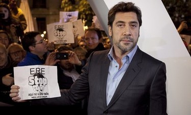 Javier Bardem con un cartel de ERE-Stop | Archivo