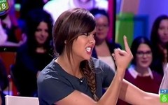 Cristina Pedroche haciendo un corte de manga | Imagen de televisión En un 'gag' de 'Zapeando' Cristina Pedroche pierde los papeles y le hace un corte de mangas a Miki Nadal Chic 23