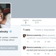 Twitter de Monica Lewinksy | @MonicaLewinsky La exbecaria de Clinton Monica Lewinsky se presenta en Twitter como "oradora pública" 6 comentarios