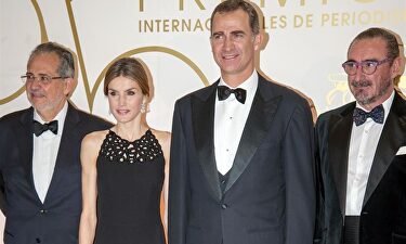 Los reyes y dos de los premiados | Europa Press Derroche de elegancia de Letizia entre periodistas La Reina eligió de nuevo uno de sus conjuntos de Felipe Varela.
