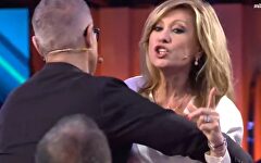 Rosa Benito en el momento del enfrentamiento | Imagen de televisión Carlos Lozano y Rosa Benito montan un numerito en el plató de 'GHVip'