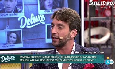 Antonio Pavón | Telecinco Alta tensión entre Carlos Lozano y el supuesto amante de su novia Miriam El torero acudió a Sálvame Deluxe para desvelar que con quien en realidad tuvo algo, fue con Mónica Hoyos, exmujer de Carlos Lozano.