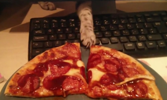 Este gato no solo no caza ratones, sino que ve impasible como esta rata le quita su comida.