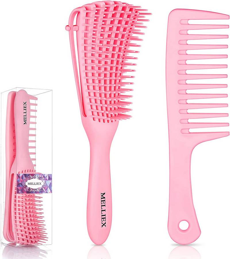 Se trata de un cepillo desenredante antitirones que es ideal para cabello con 3a a 4c, por lo que es ideal para cabello ondulado, rizado o enredado. Es apto para el uso tanto en el pelo húmedo como seco, y permite desenredar sin ningún tipo de dolor. Viene con 8 filas de peina independientes y completamente flexibles, con dientes que son suaves con una buena elasticidad, para mover el cabello y eliminar los enredos del cabello fácilmente.