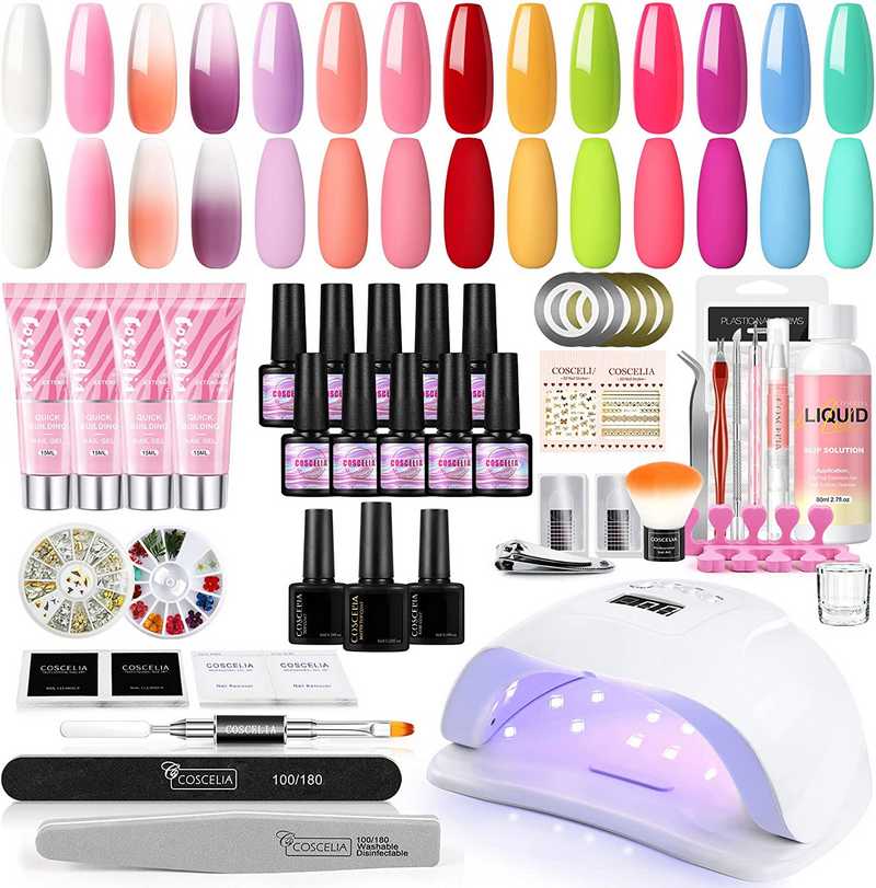 Este es un kit completo para tus uñas en el cual te encontrarás con un total de 10 colores para que puedas conseguir uno que se ajuste a tus necesidades diarias. Tiene todo lo que necesitas para que puedas cuidar tus uñas y mantenerlas siempre perfectas al mismo tiempo que las alarga. Incluye una lámpara de uñas que se puede cambiar en dos modos de 24W y 48W, lo que te permite conseguir siempre la potencia que requieres. Por otra parte, tiene 3 configuraciones de temporizador de 5/30/60 segundos.