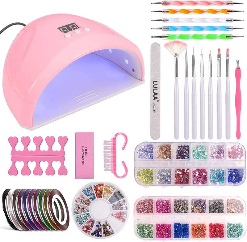 Se trata de un kit de uñas acrílicas que es ideal para que puedas conseguir unas manos y pies bonitos. Viene con una lámpara de 48W, y más de 25 accesorios para que puedas crear un estilo de uñas perfecto para ti. Cuenta con diferentes esmaltes, así como diferentes limas de uñas para que puedas arreglarlas siempre. La lámpara LED cuenta con 3 modos de temporizador de 30/60/90 segundos, y con un sensor de secado que detecta el movimiento para apagar automáticamente la lámpara cuando se retira la mano.