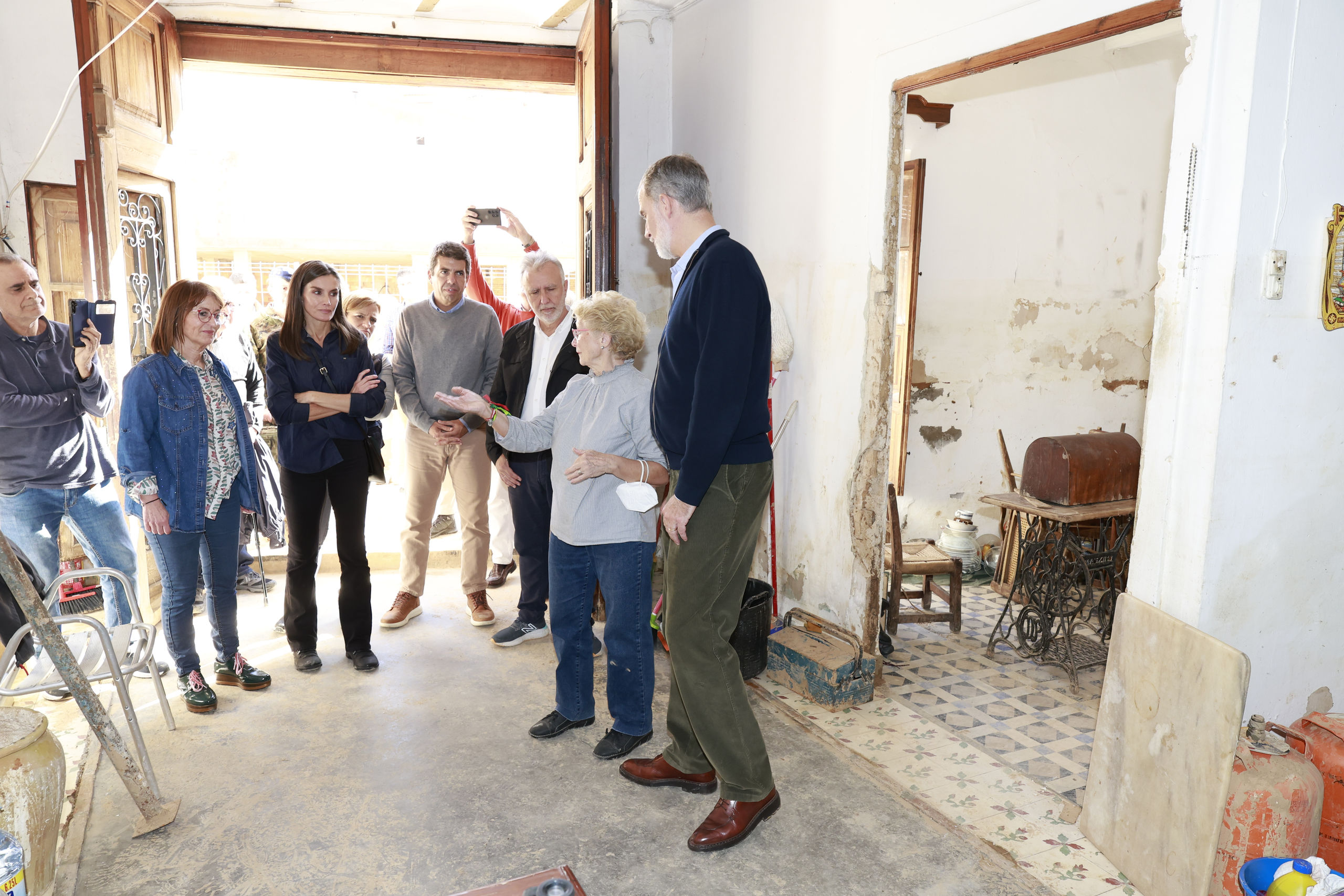 Don Felipe y Doña Letizia han visitado una casa en Chova donde han podido ver el estado de la vivienda y cómo la riada arrasó con todo.