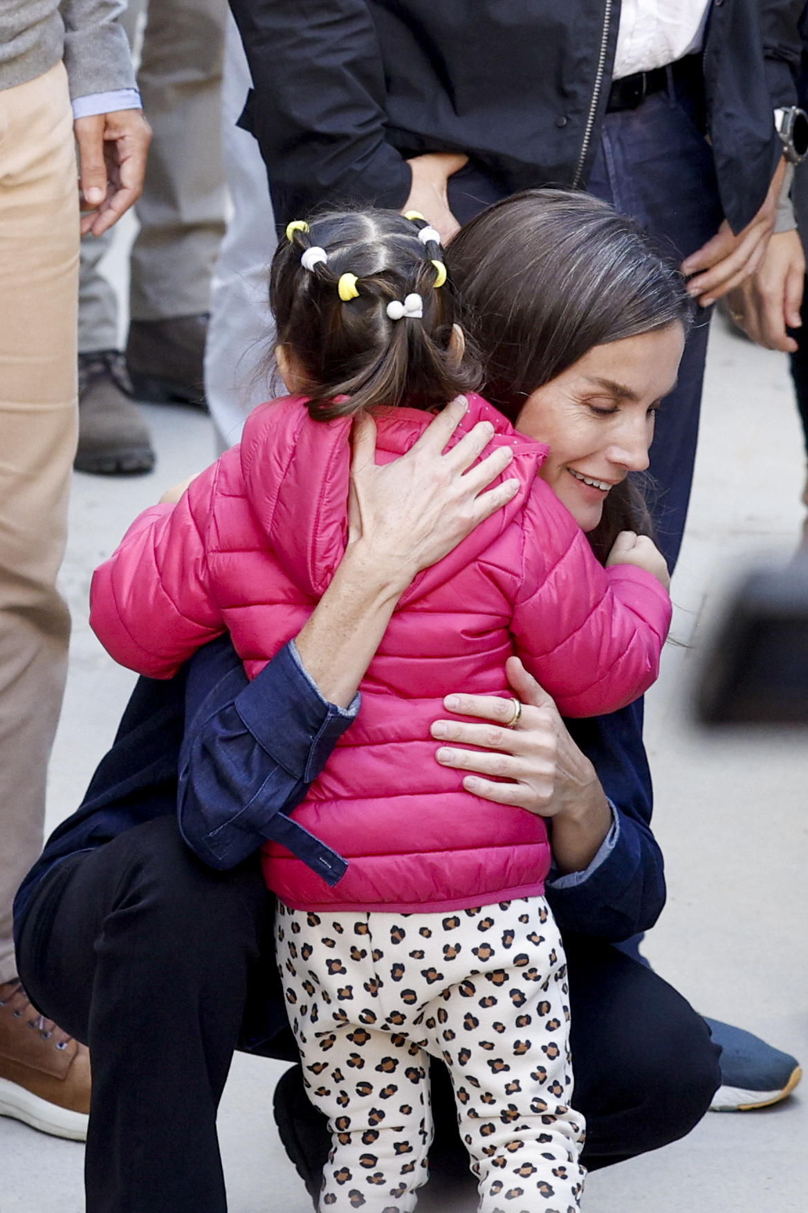 Candela, de tres años, se ha acercado a la Reina para entregarle un dibujo. “¿Quién te ha hecho estas trenzas?" le ha preguntado Doña Letizia mientras que se han dado un cariñoso abrazo.