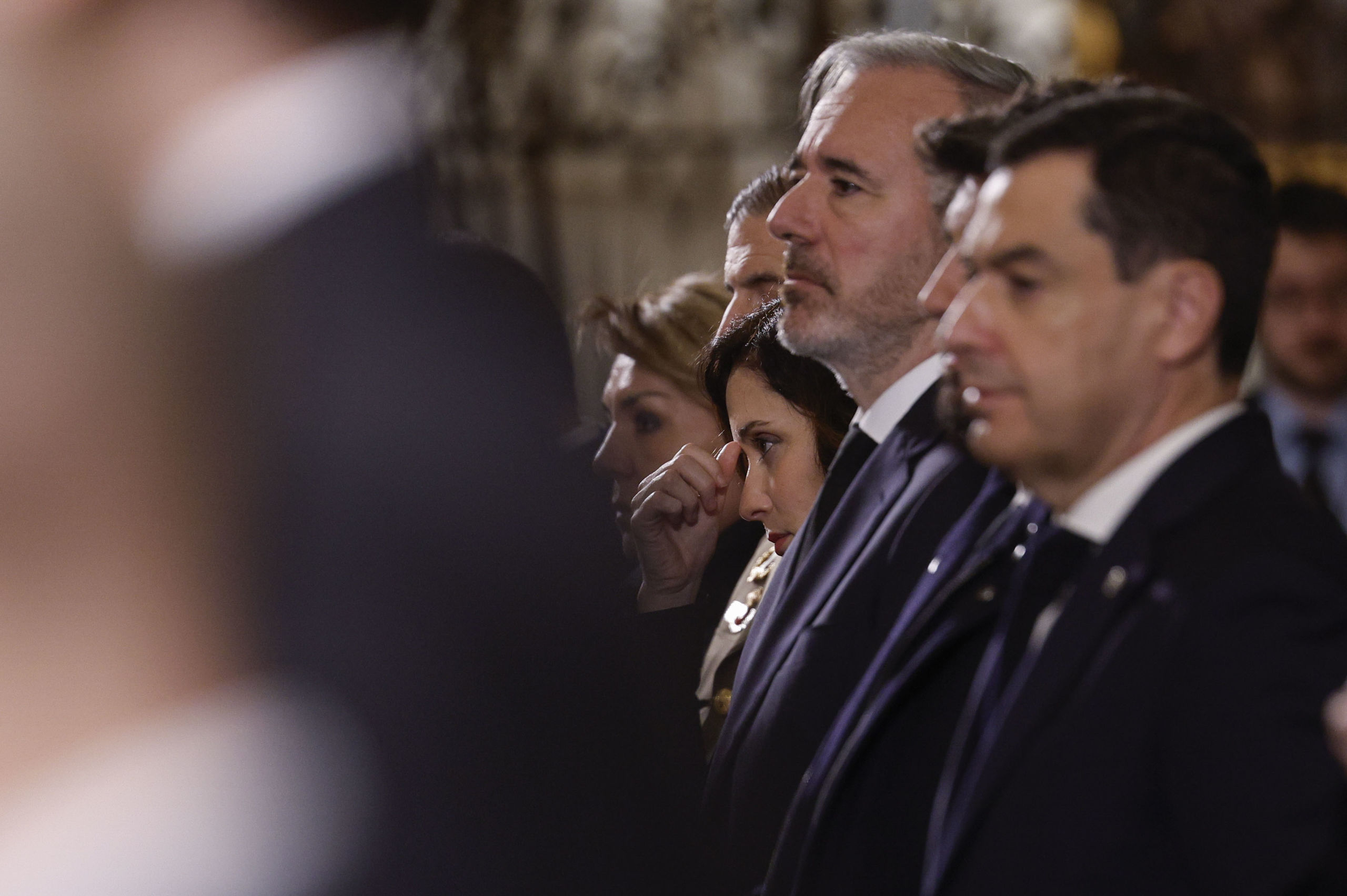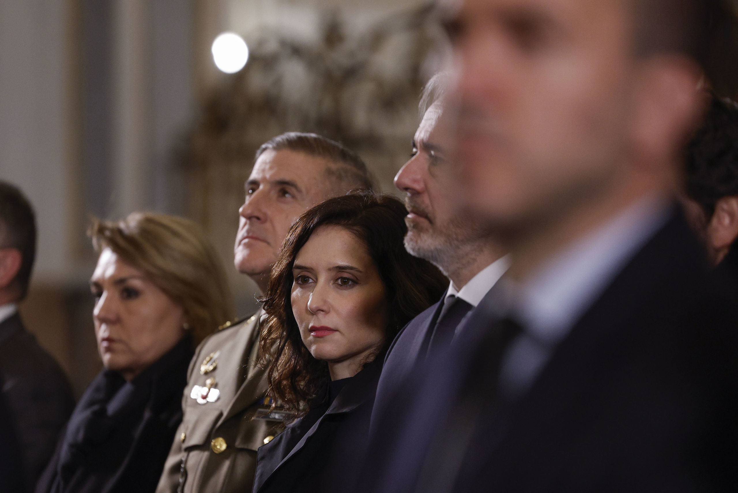 La presidenta de la Comunidad de Madrid, Isabel Díaz Ayuso durante el funeral por las víctimas de la DANA celebrado este lunes en la catedral de Valencia