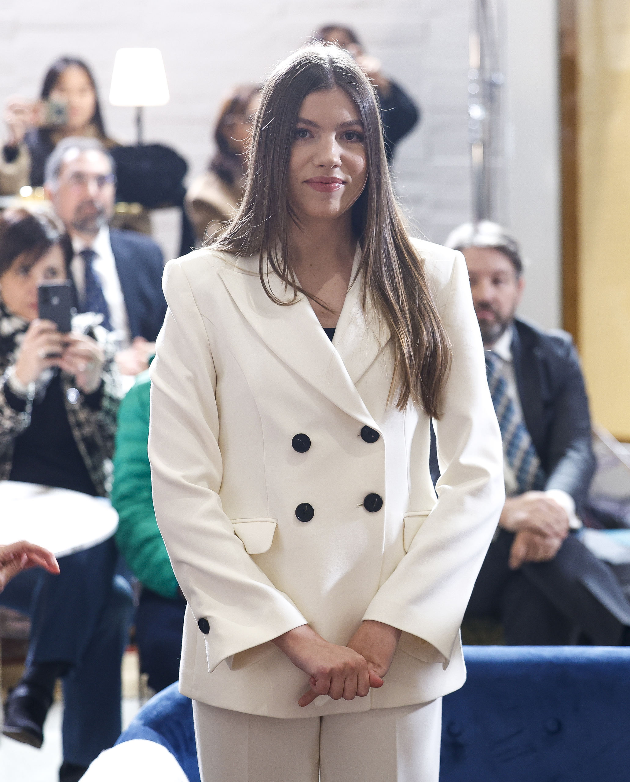 Para este importante paso en su papel como miembro de la Familia Real, la joven optó por vestir un traje de sastre blanco, un estilo al que recurre su hermana mayor, la princesa Leonor, en las grandes ocasiones.
