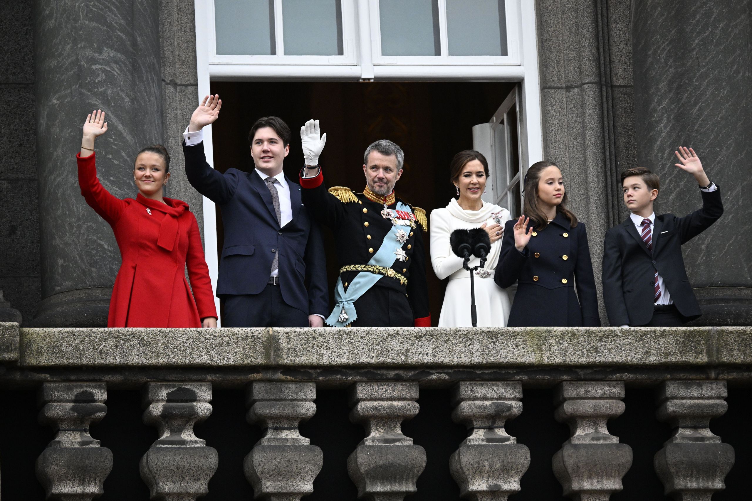 La reina Margarita de Dinamarca decidó abdicar el pasado 14 de enero, después de 52 años de reinado, y según cuentan, pudo ser una maniobra desesperada para salvar el matrimonio de su heredero y la corona. Un emocionado rey Federico, junto a la reina Mary y sus hijos, saludan desde el balcón del Palacio de Christiansborg.