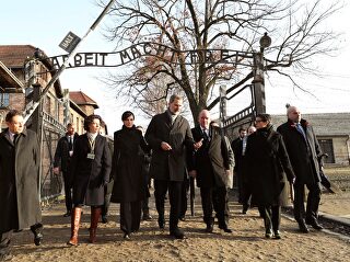 Posteriormente, los Reyes de España, al igual que hicieron los Reyes de los Países Bajos o los de Bélgica, así como Enrique, Gran Duque de Luxemburgo, la Princesa Victoria de Suecia, el Príncipe Haakon de Noruega o la por entonces Duquesa de Cornualles y hoy reina Camilla, junto a los presidentes de Polonia, Alemania, Israel, Austria, Finlandia, Bulgaria y Ucrania, entre otros, acudieron para rendir tributo a los cuatro millones de víctimas del exterminio nazi participando en un acto ecuménico y una ceremonia conmemorativa en la que escucharon los emotivos testimonios de los supervivientes. Por la noche, caminaron hasta el Monumento a las víctimas donde dejaron unas velas.